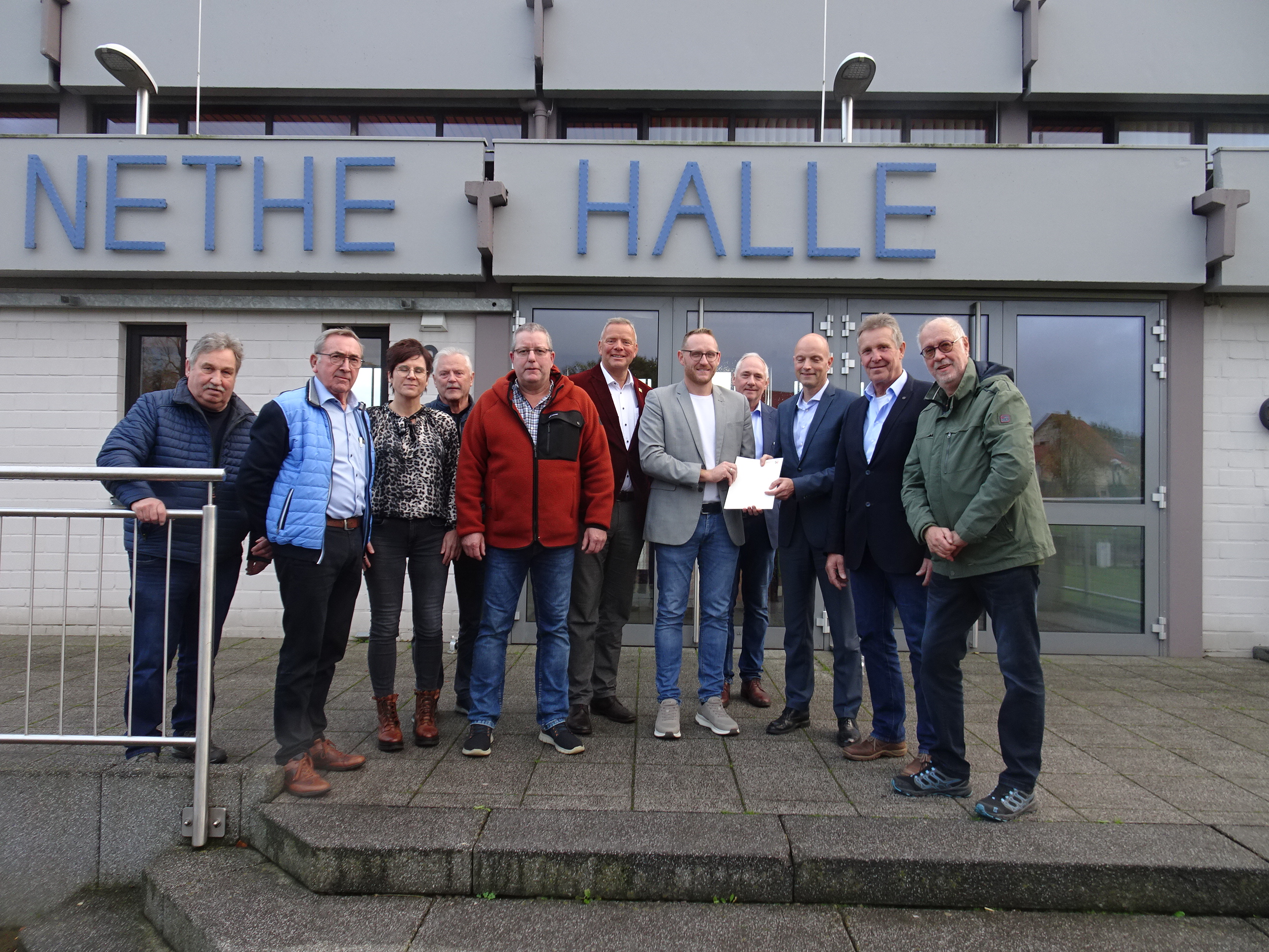 Die Planungen rund um die Dachsanierung und um diverse Instandsetzungen können beginnen. Ein Förderbescheid des Landes NRW und des Bundes wurde durch die Bezirksregierung am 27. Oktober 2025 ausgehändigt. Beim Übergabetermin waren der Vorstand des Betreibervereins Nethehalle e.V. sowie die Mitarbeiter der Bezirksregierung Detmold und der Stadt Bad Driburg zugegen: Jörg Becker (Hallenwart), Ferdinand Arens (Rechnungswesen), Dagmar Hiller, Willi Böhler (Hallenwart), Johannes Hesse (2. Vorsitzender), Matthias Goeken (MdL), Florian Greger (Stadt Bad Driburg), Thomas Arens (Vors. d. Bezirksausschusses Neuenheerse), Jens Kronsbein (Bezirksregierung Detmold), Jürgen Brand (1. Vorsitzender und Heiko Bulk Medienbeauftragter. Die geplanten Arbeiten können voraussichtlich im Jahr 2026 ausgeführt werden. Die Vermietung der Nethehalle soll nach Terminabsprache während der Arbeiten fortgeführt werden.